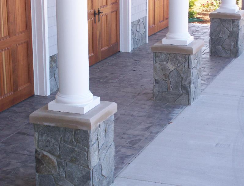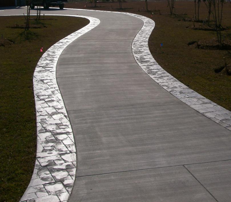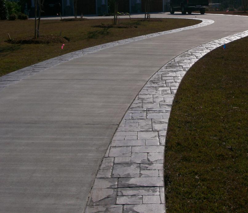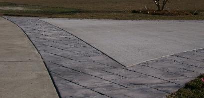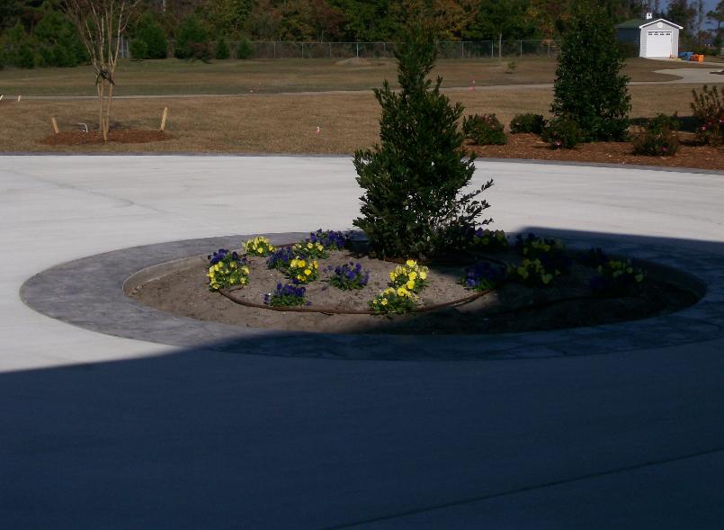STAMPED, COLOR APRON, BORDERS AND GARAGE ENTRANCE WITH STAMPED, CIRCLE PLANTER TURN AROUND