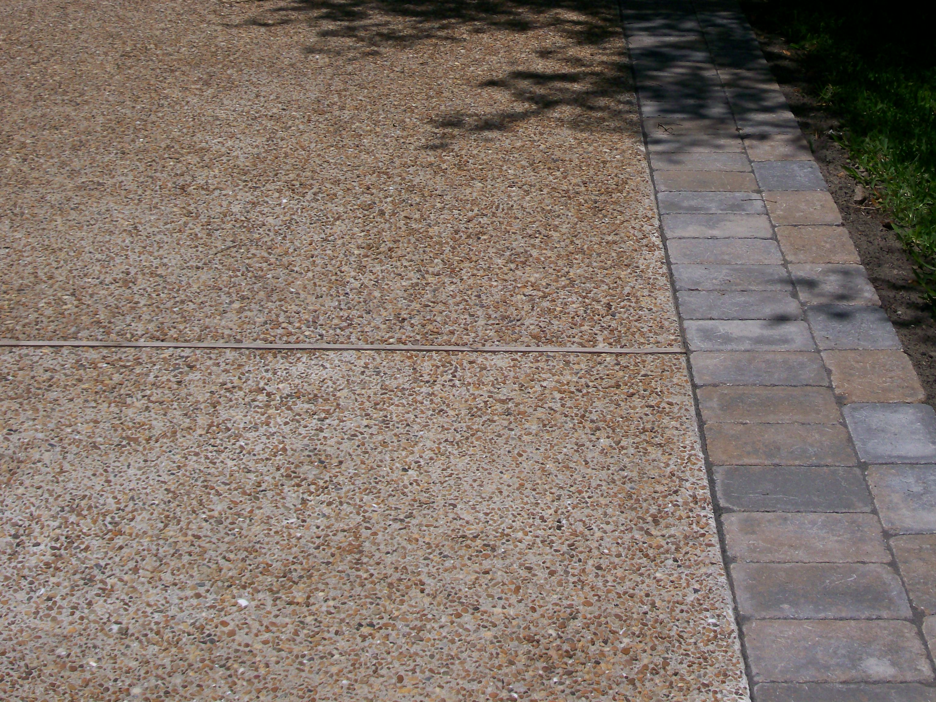EXPOSED AGGREGATE DRIVEWAY IN MANTEO, NC WITH MONOLYTHIC POOR FOUNDATION WITH BRICK BORDER PAVERS