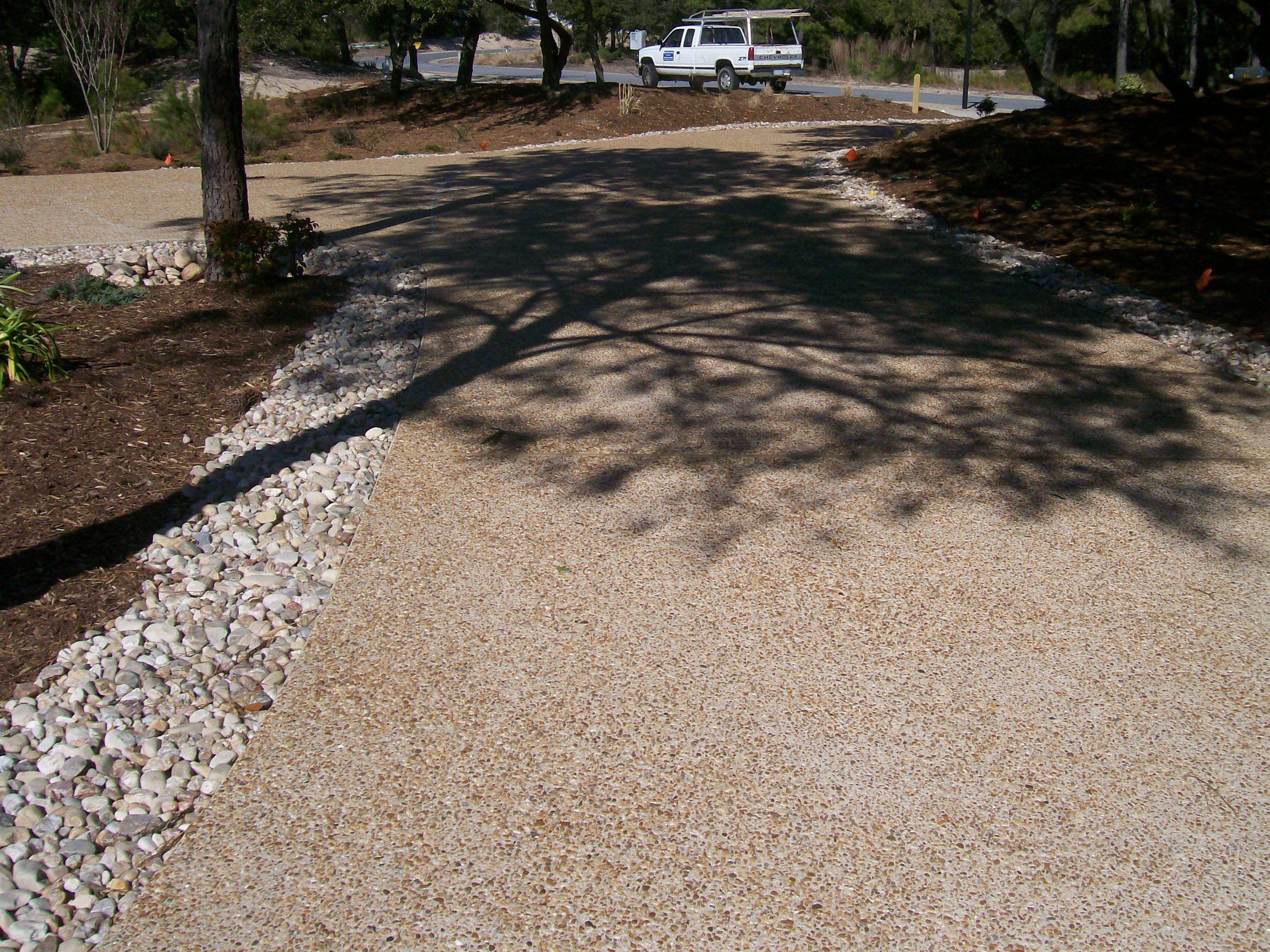 COLOR, EXPOSED AGGREGATE, CONCRETE DRIVEWAY WITH GRAVEL ROCK BORDER IN THE CURRITUCK CLUB, COROLLA